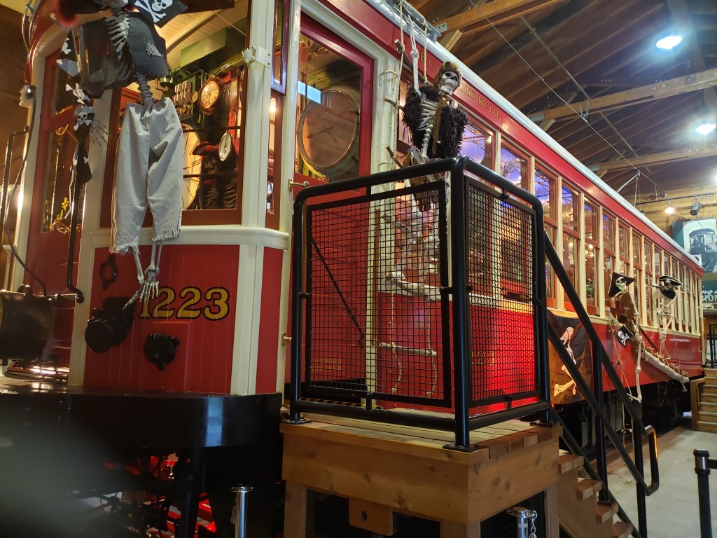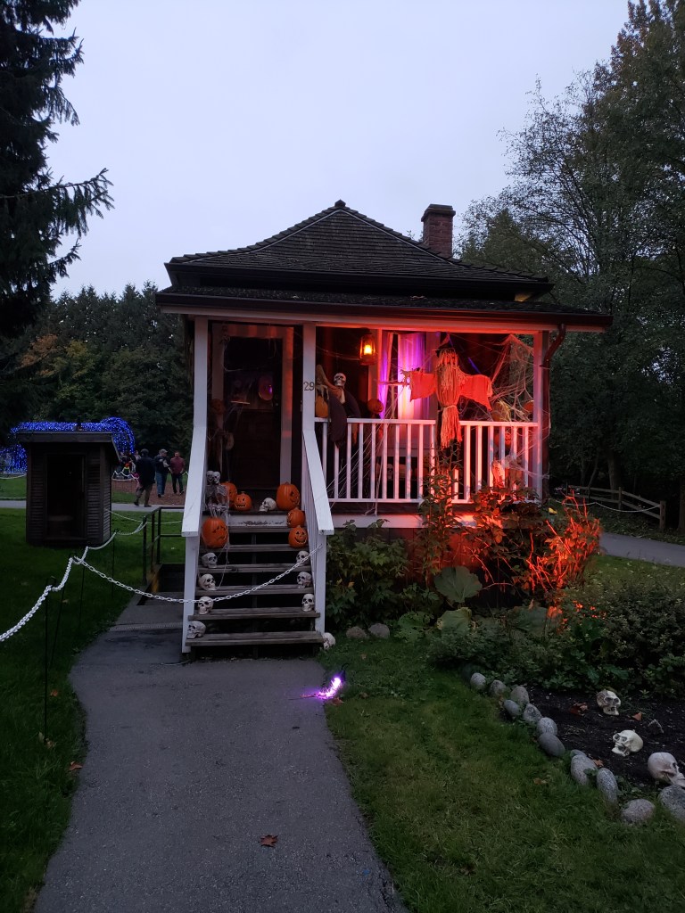 You can visit so many Halloween-themed displays, such as the train above which has temporarily been commandeered by skeletal pirates. Or check out how well people have decorated their houses.